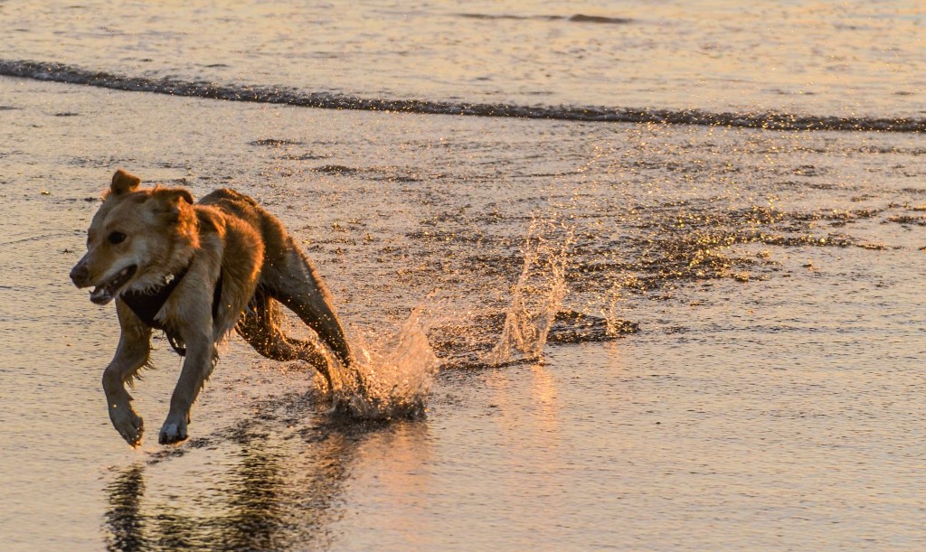 Teddy (right) picked up a perfect stranger at the beach to practice her elaborate dance moves while Molly (below) ran away from a sunset.