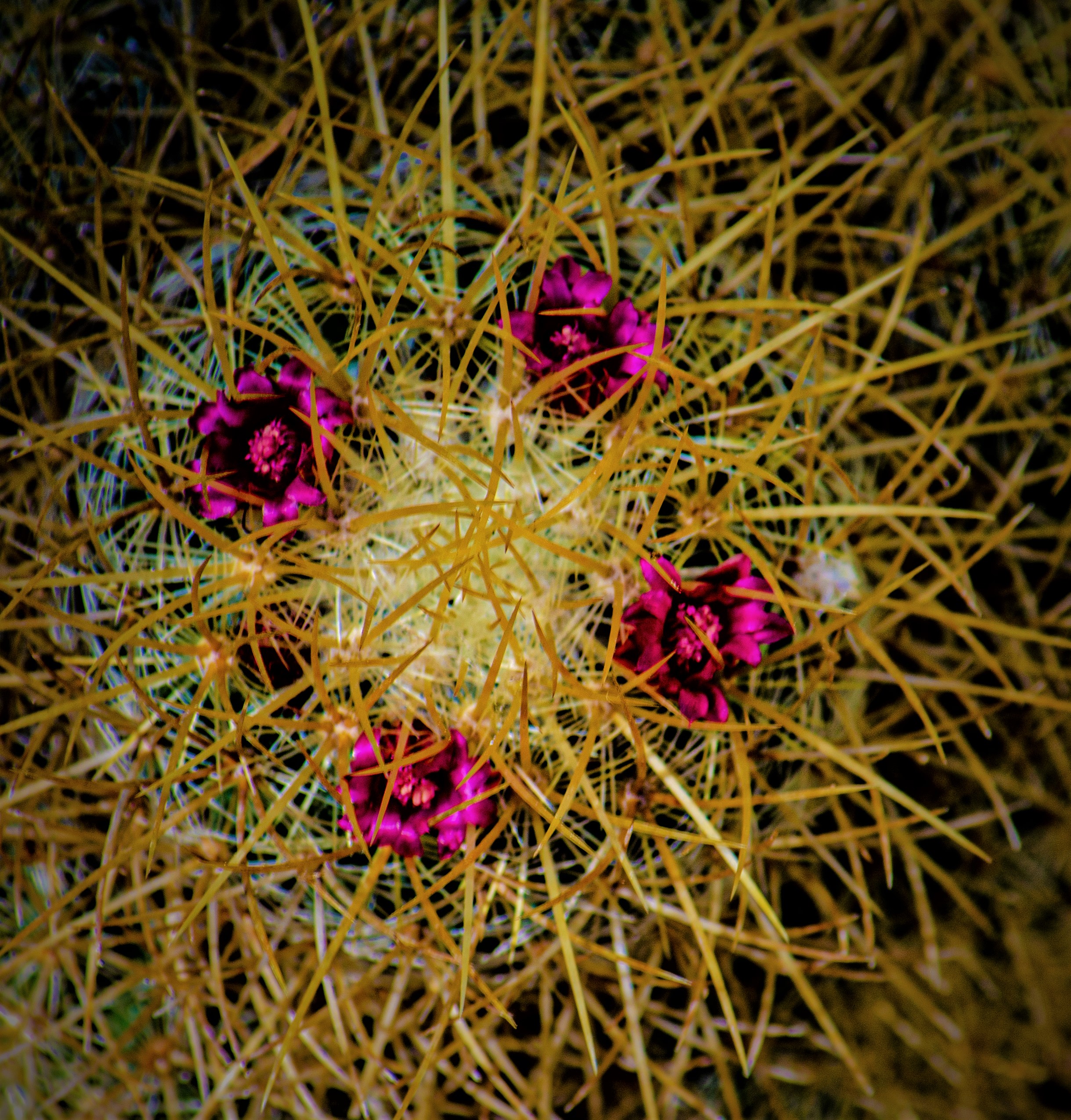 Here is a cactus that I’ve had for 50 years. It is short and squatty as seen from overhead. And for the first time it has blooms. This is the year of firsts.
