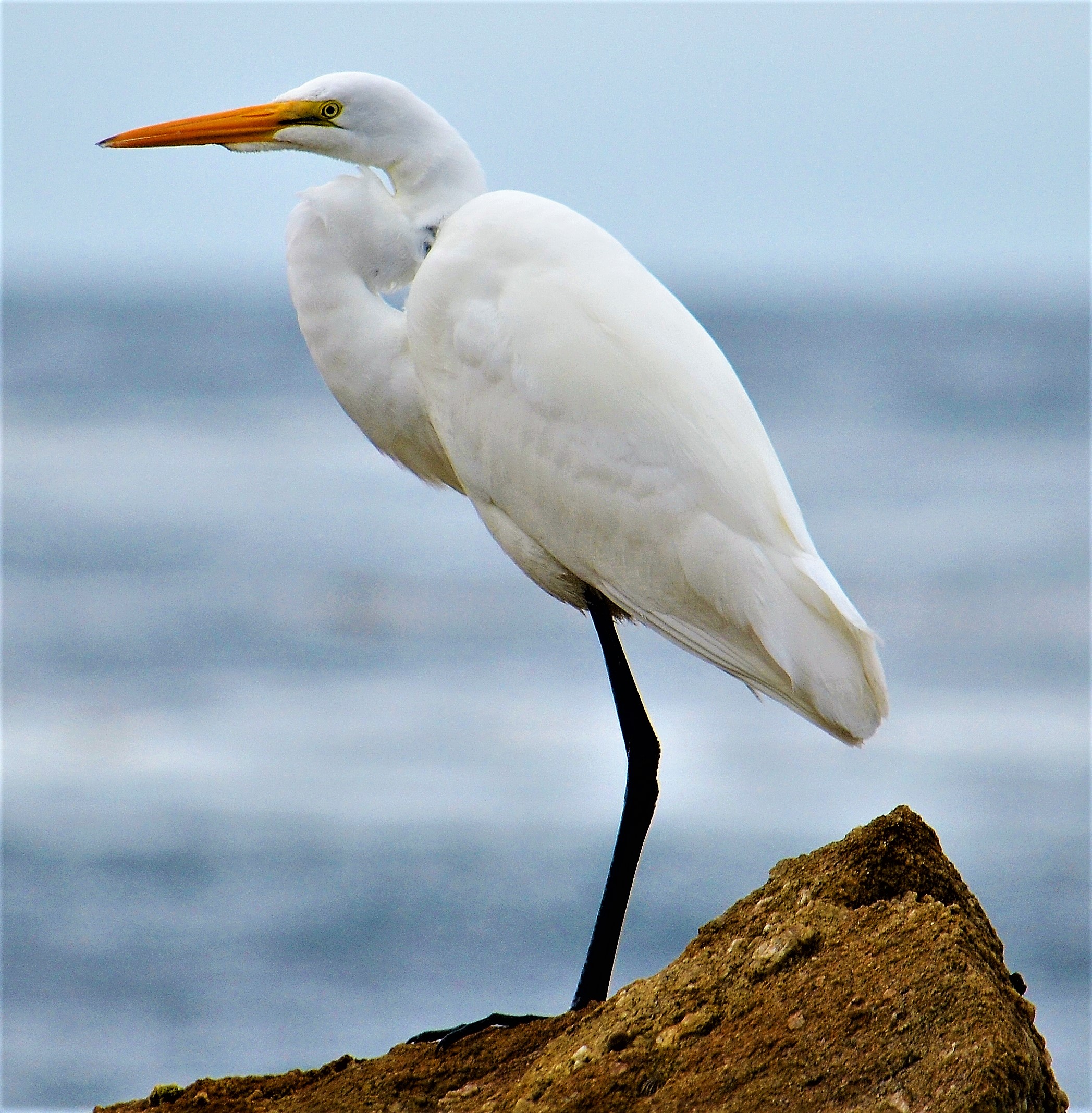 Took this shot of an egret with one leg showing. A minute earlier it had two legs. Egrets and other species of birds stand on one leg with the other tucked among feathers to maintain warmth–blood flow from the leg is cold compared to blood flow through feathered parts of the bird.