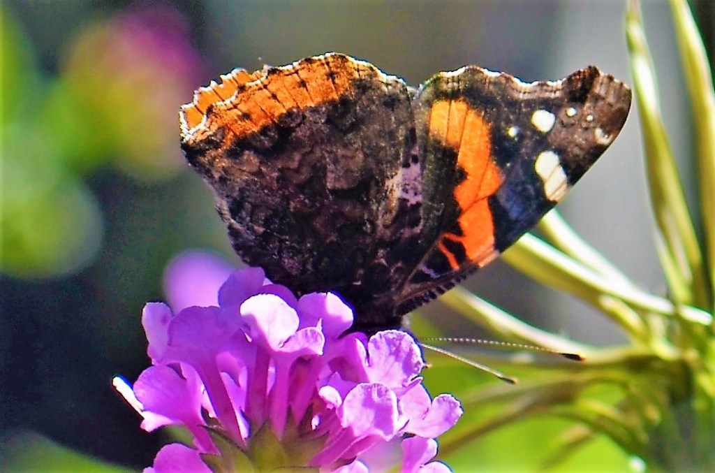 The Red Admiral Butterfly is known as a friendly insect and may land on you. This one was in our backyard, posing for a photo.