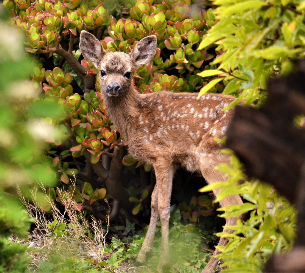 Our neighborhood has seen a major increase in deer sighting at all hours of the day. Yesterday, near the grounds of a middle school, two dead deer were found, partially eaten. Several people say a mountain lion may have been involved in the attack. Three nights ago in front of our house two coyotes eyed me and Ivan(a rescue dog)–they chose to run…towards the school. Last night Ivan refused to go out in the dark.