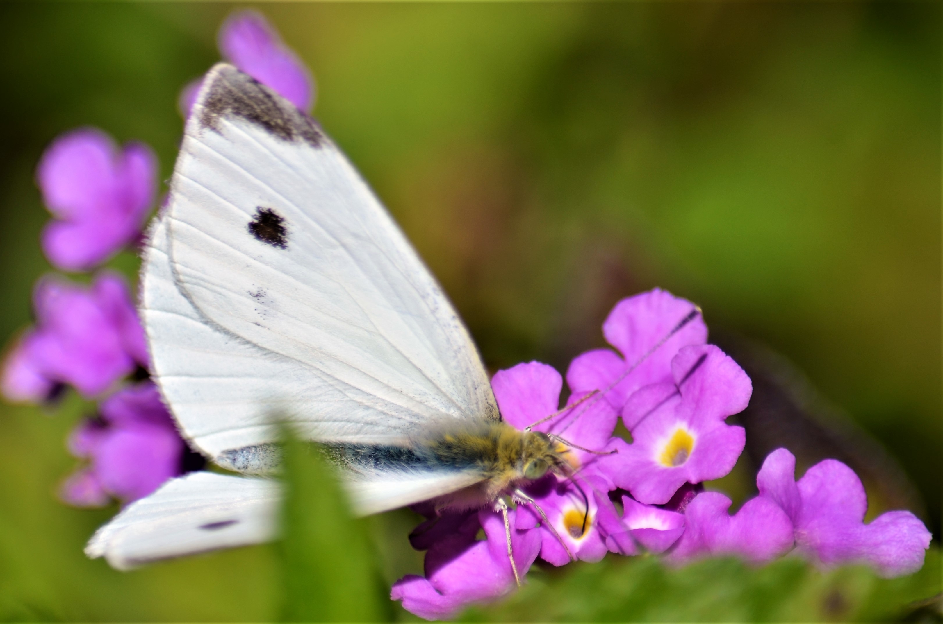 When I photograph a cabbage white butterfly on a flower, I know I don’t have much time to focus and get the right light settings before it flitters off. Also on the checklist are merges that interrupt a clear shot. In the example here, the middle of the frame has the distraction of a leaf sticking up. Sometimes processing can minimize the unwanted merge and sometimes, it just is.