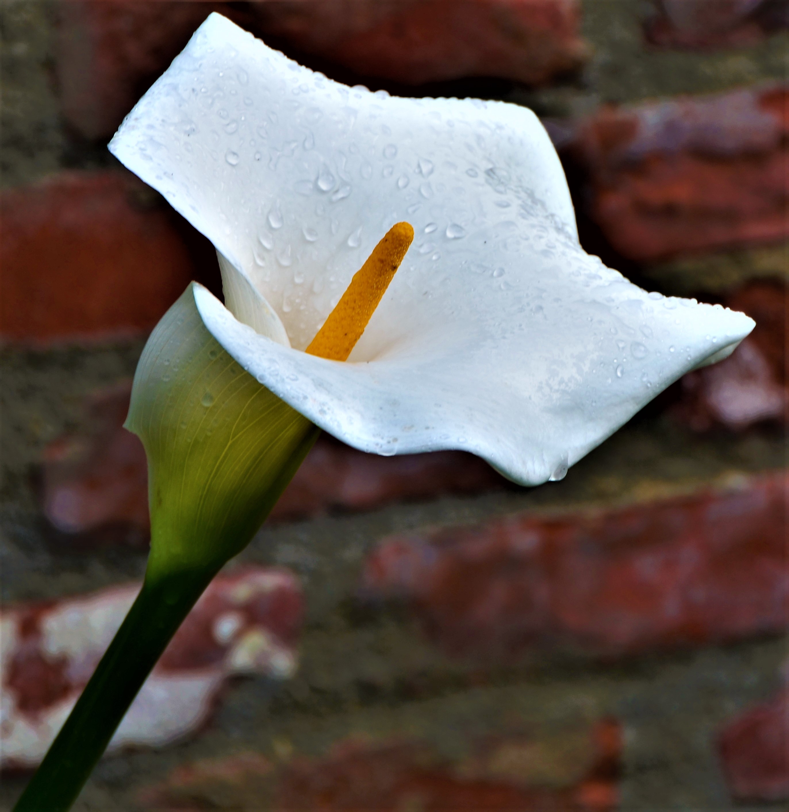 Several weeks ago the lone Calla Lily in our yard was spent. Yesterday it was back in bloom during a light rain. Nice.