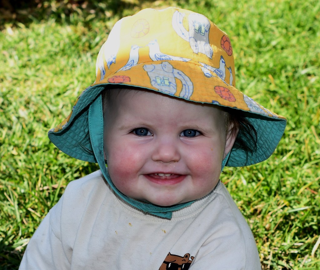 My granddaughter lights up the day with her smiles and a floppy hat.