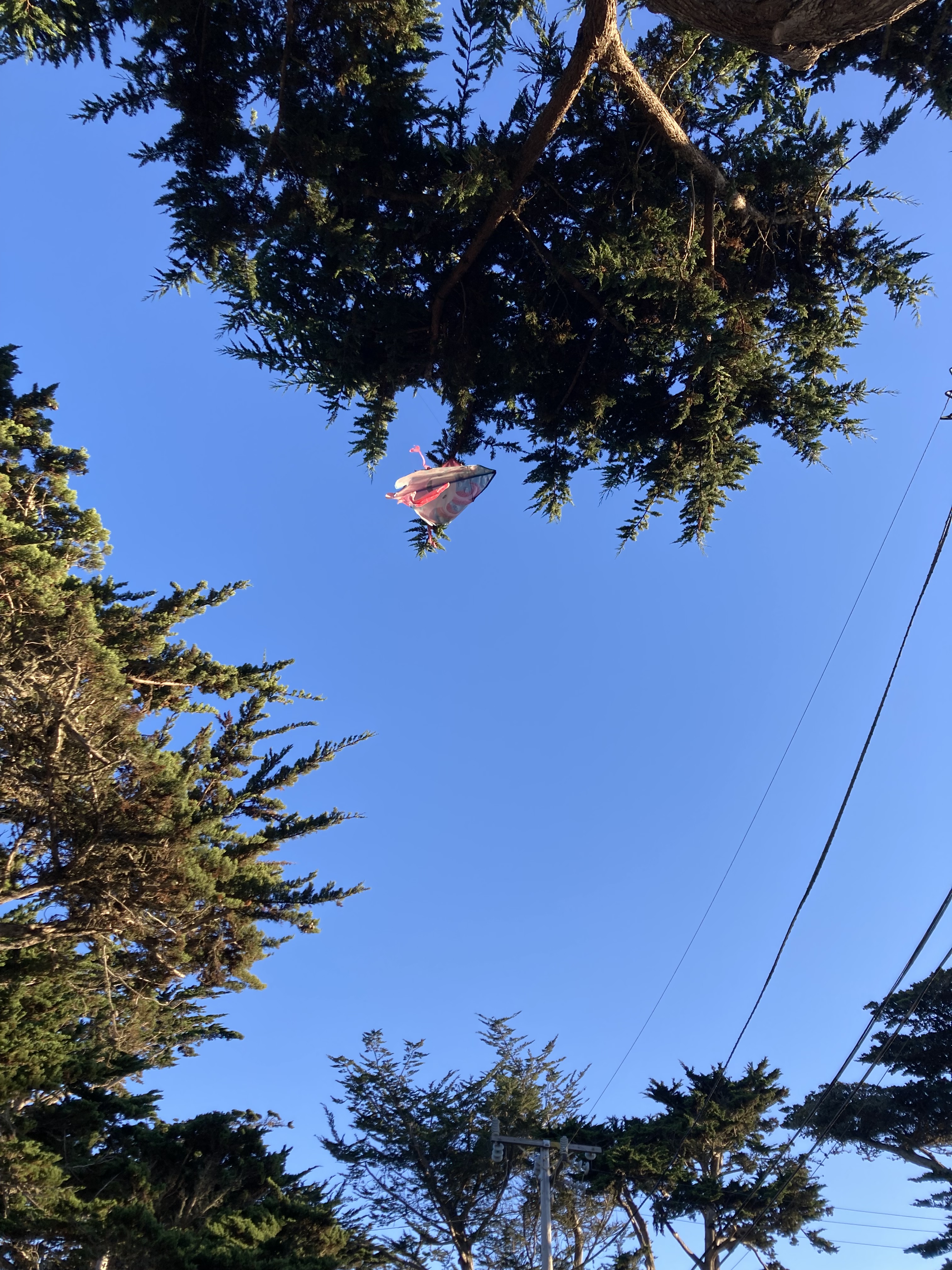 Towering cypress trees are a final resting spot for many a kite in Carmel.