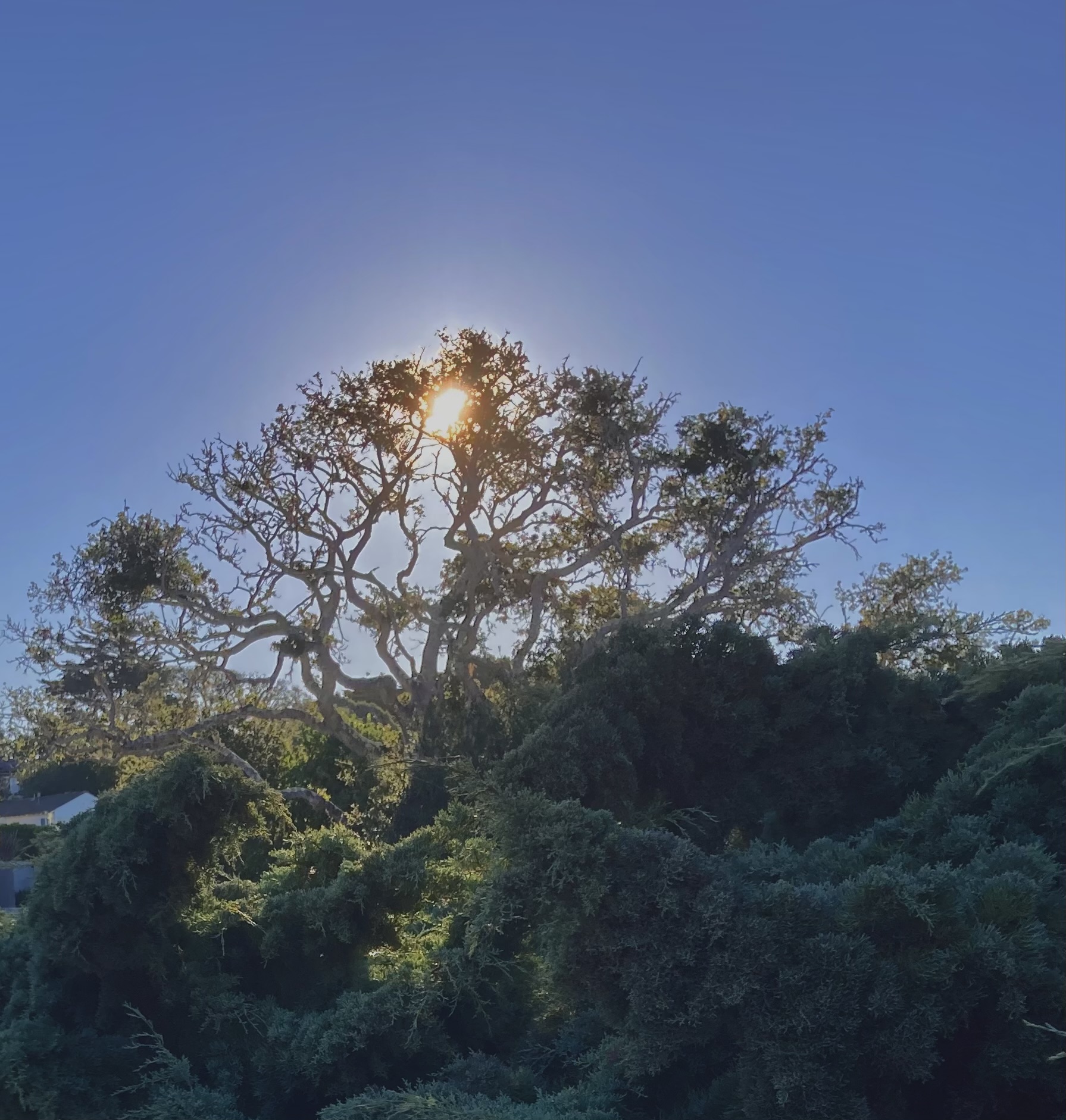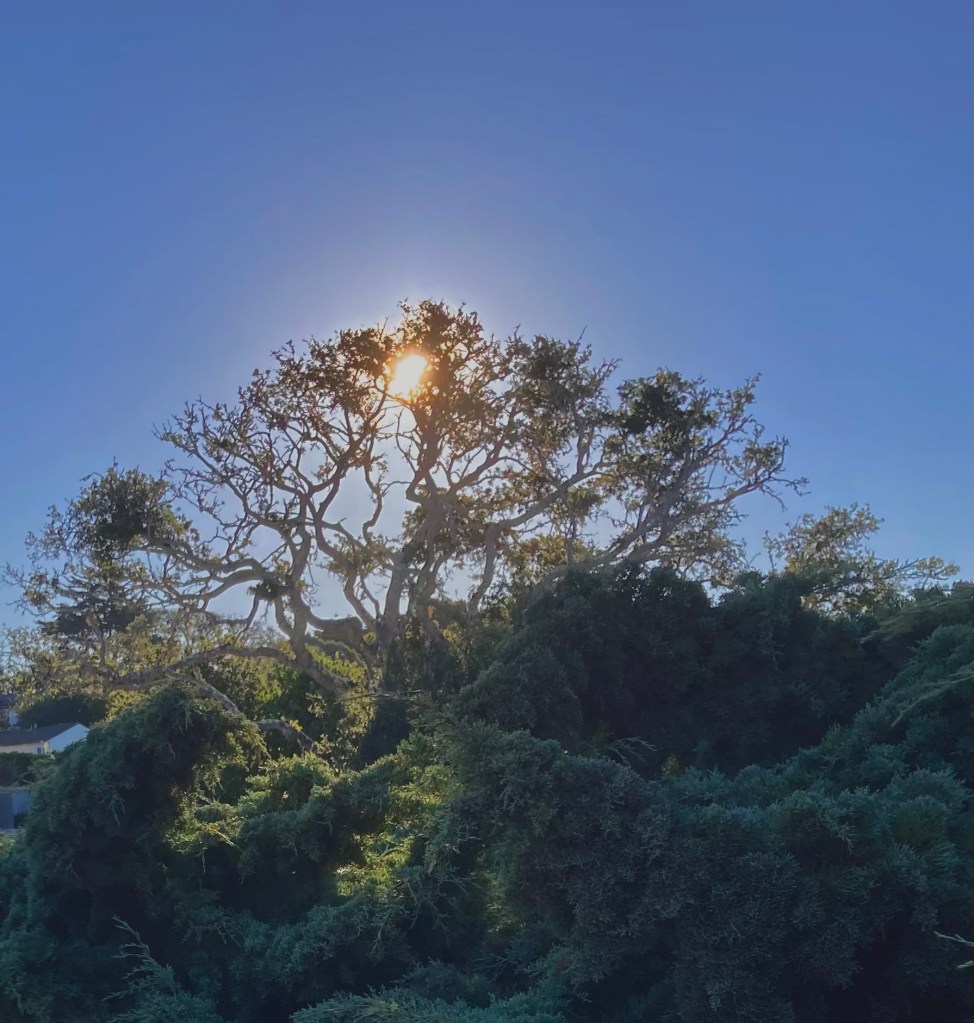 This morning the sun rested in the top of a coastal oak.