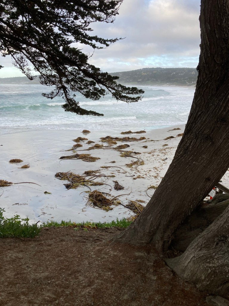 High tides bring a trail of kelp to the beach.