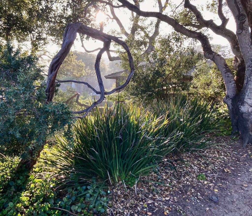 Gnarled oaks in the morning light add a mystique to the landscape near the ocean.